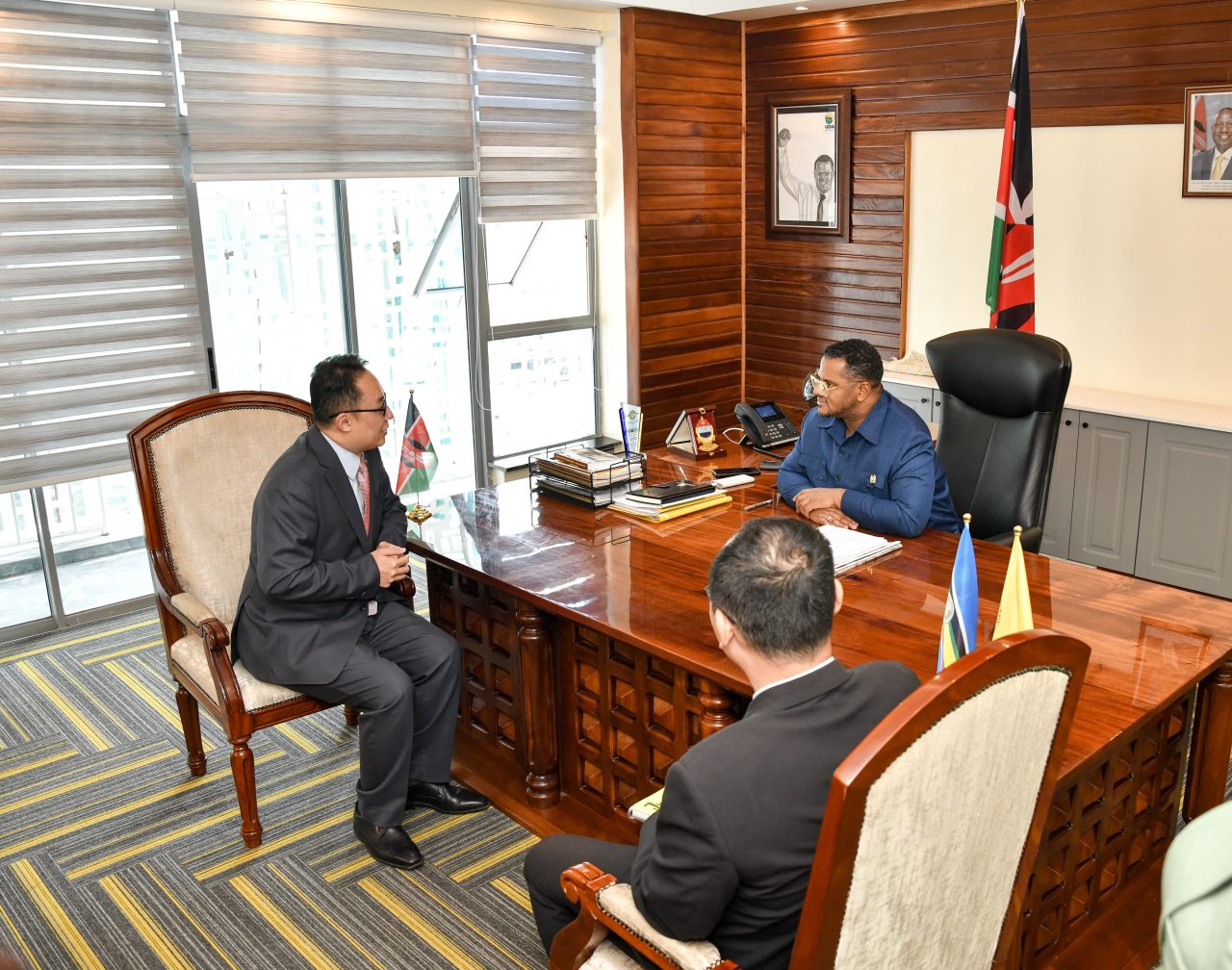 New China Embassy Counsellor to Kenya Dr. Sun Yinan led a Chinese delegation to a courtesy call on UDA Party Secretary General Sen. Hassan Omar at the party headquarters, Hustler Plaza.