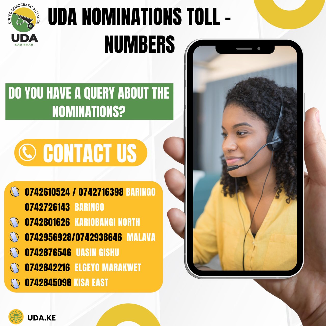 The United Democratic Alliance (UDA) has unveiled official toll numbers to assist members and aspirants with queries regarding the ongoing party nominations.